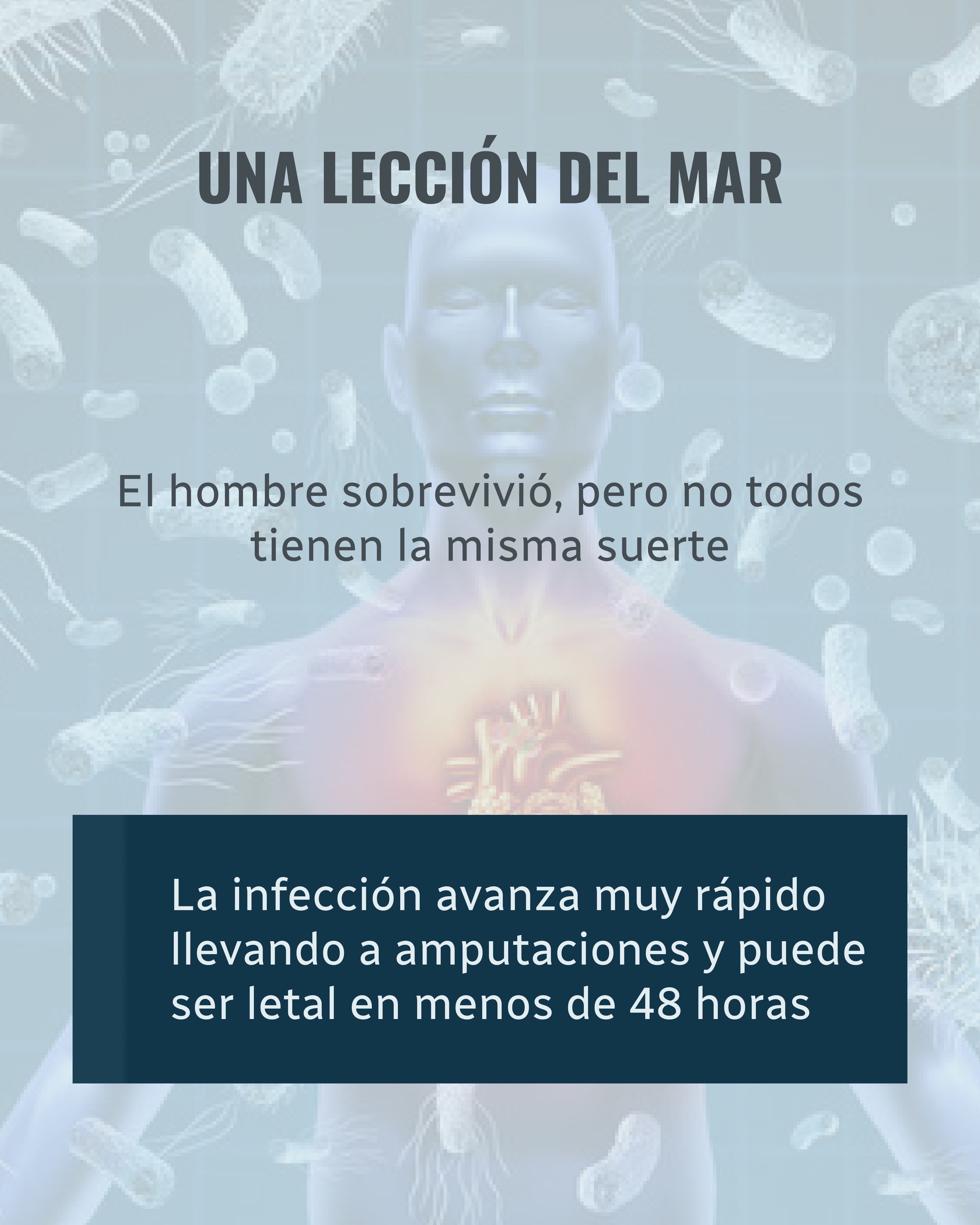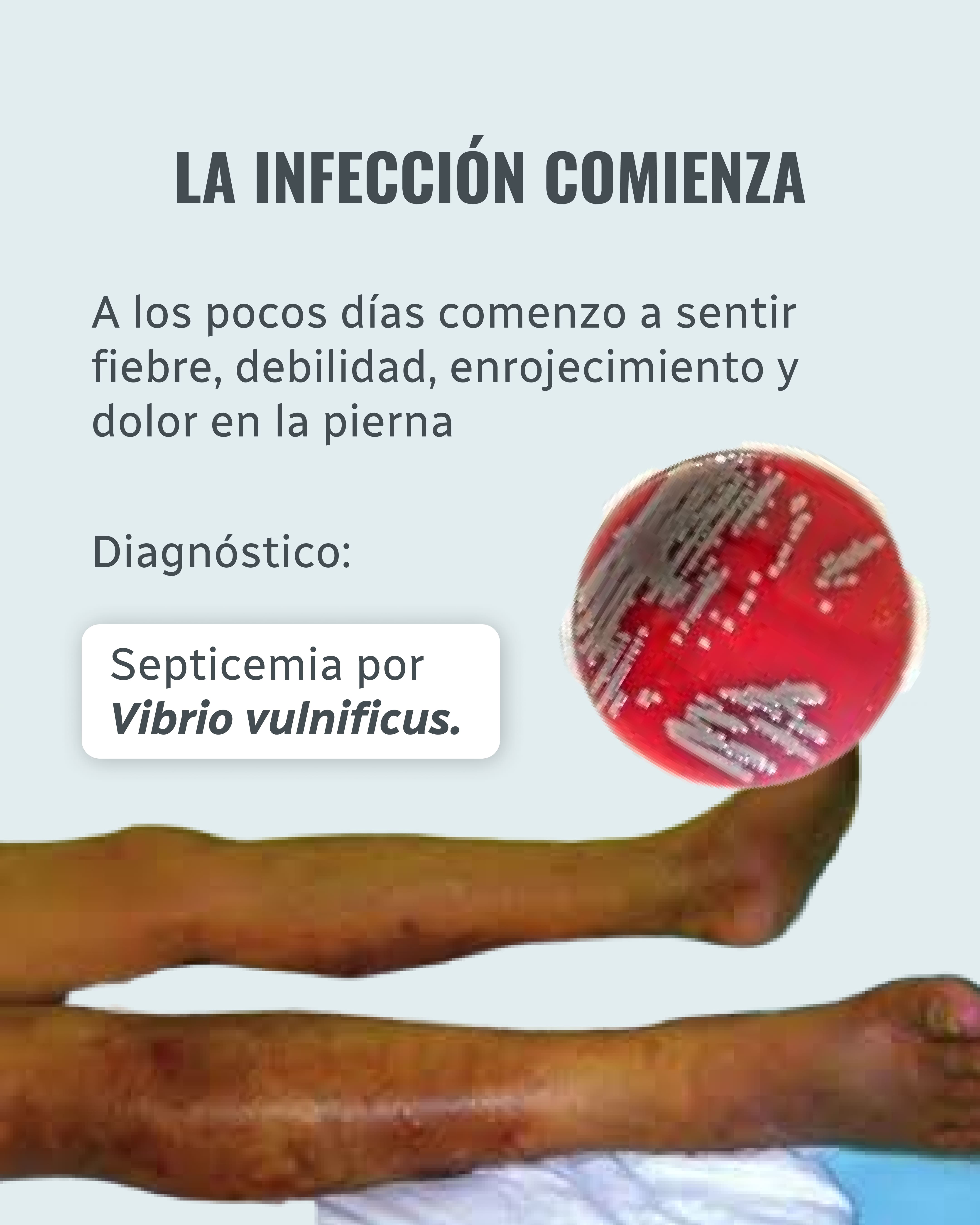 Presente en aguas cálidas y salobres, esta bacteria oportunista puede ingresar por heridas abiertas o al ingerir mariscos crudos o poco cocinados.