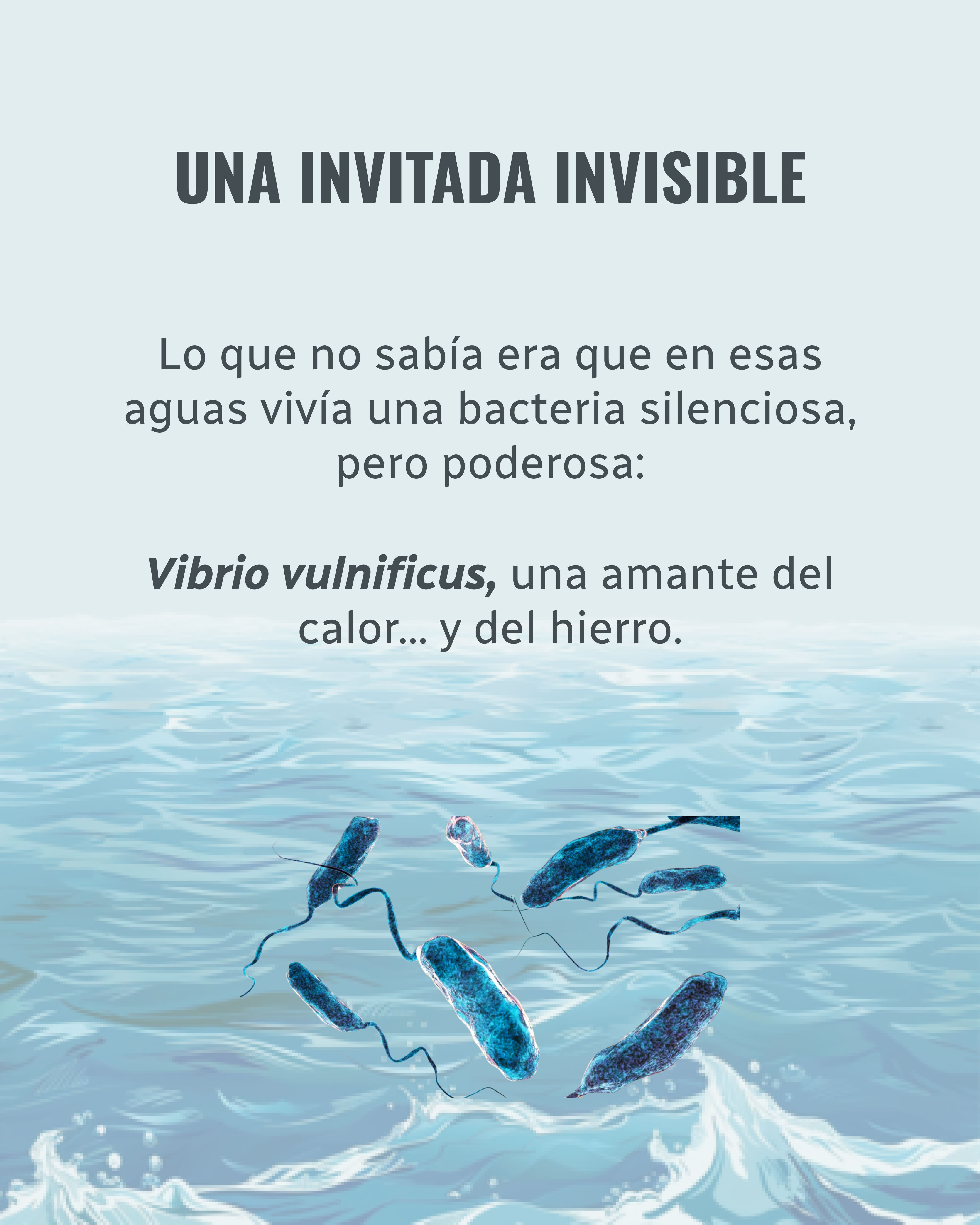 Vibrio vulnificus es una bacteria gram negativa que vive en aguas cálidas y se alimenta del hierro de nuestra sangre.