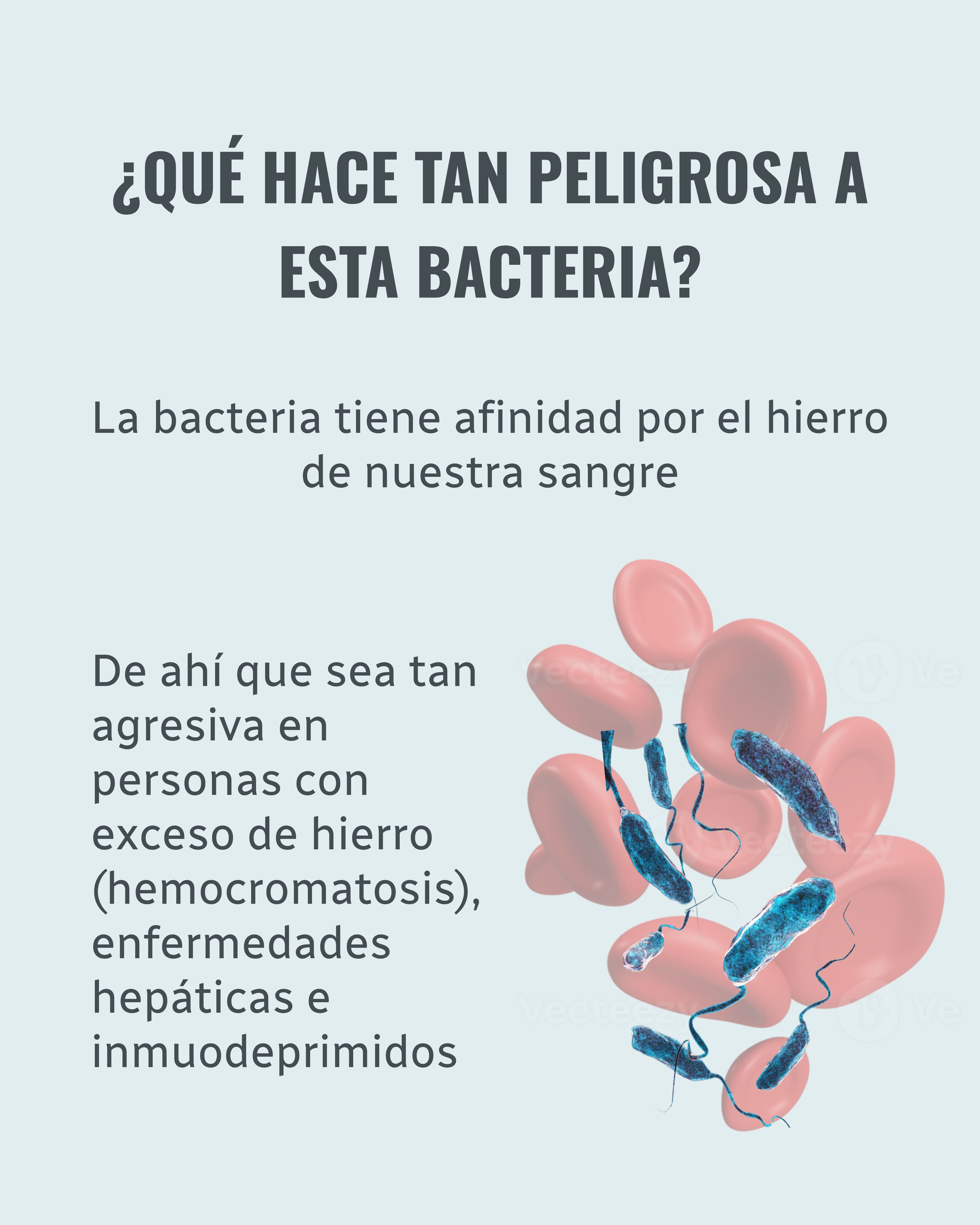 Pero lo que la hace realmente peligrosa es su afinidad por el hierro en personas con exceso de este mineral (hemocromatosis), con el sistema inmune debilitado y enfermedades hepáticas, su avance puede ser fulminante (septicemia).