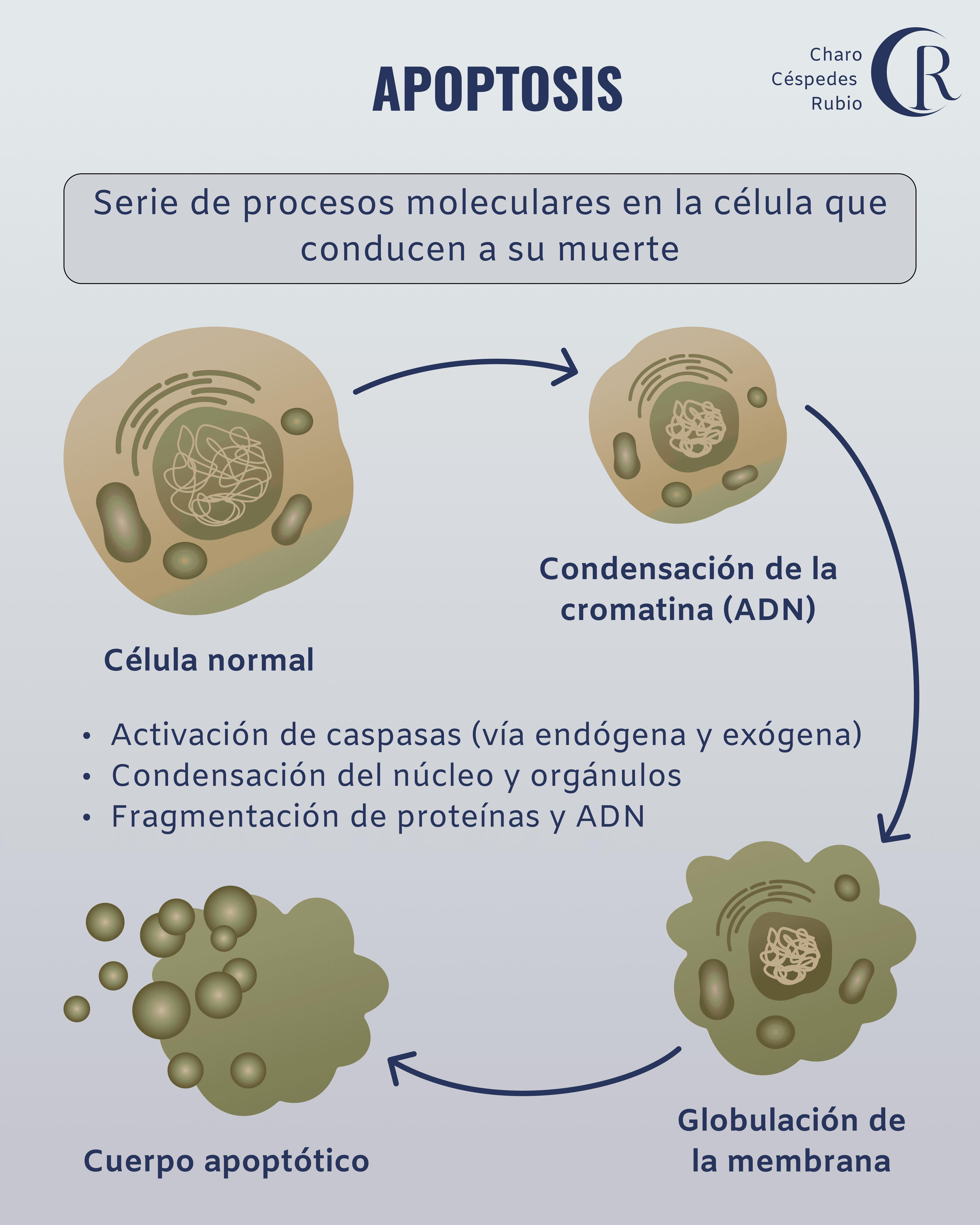 La célula que muere por apoptosis sufre una serie de cambios morfológicos, reduciendo su volumen: