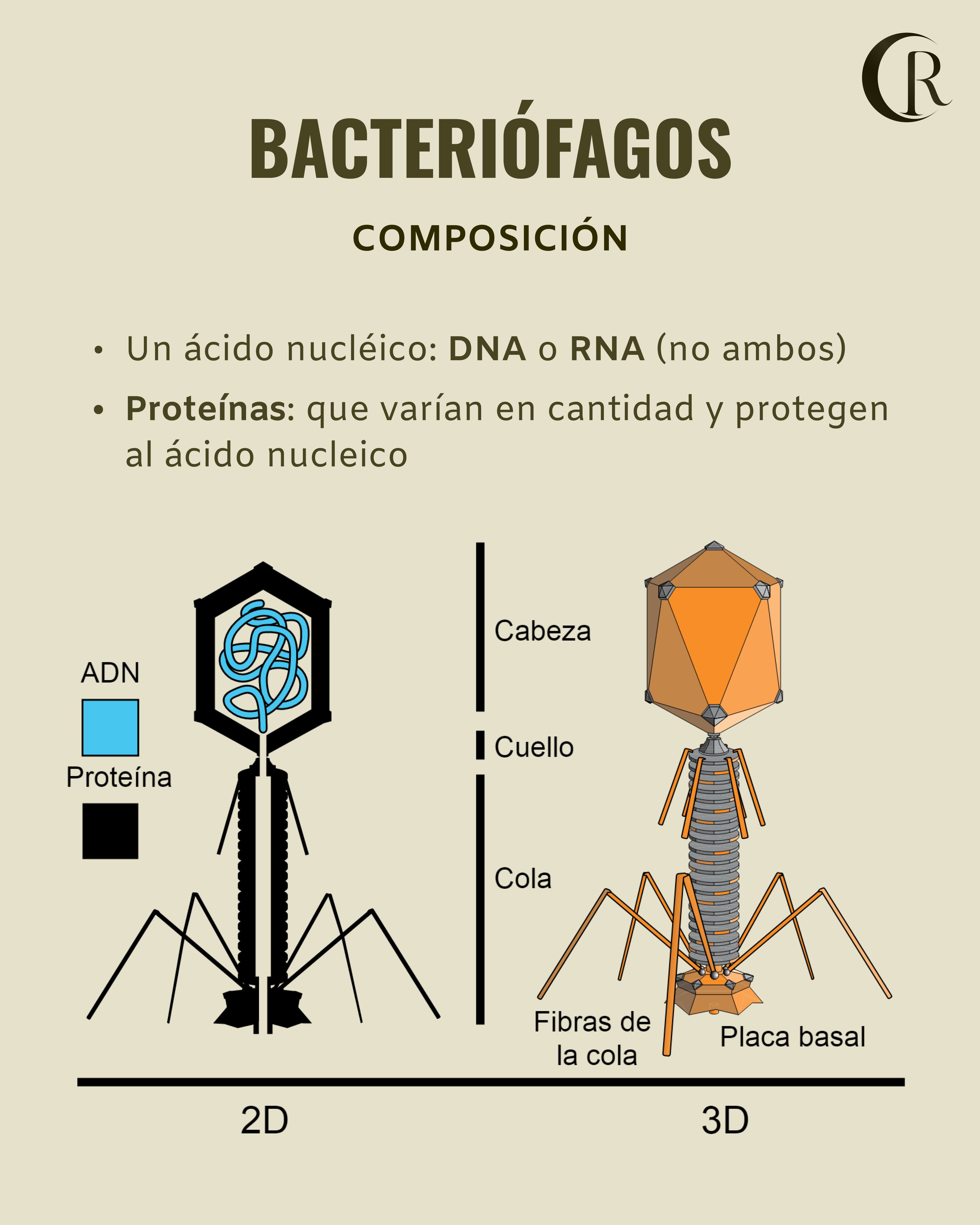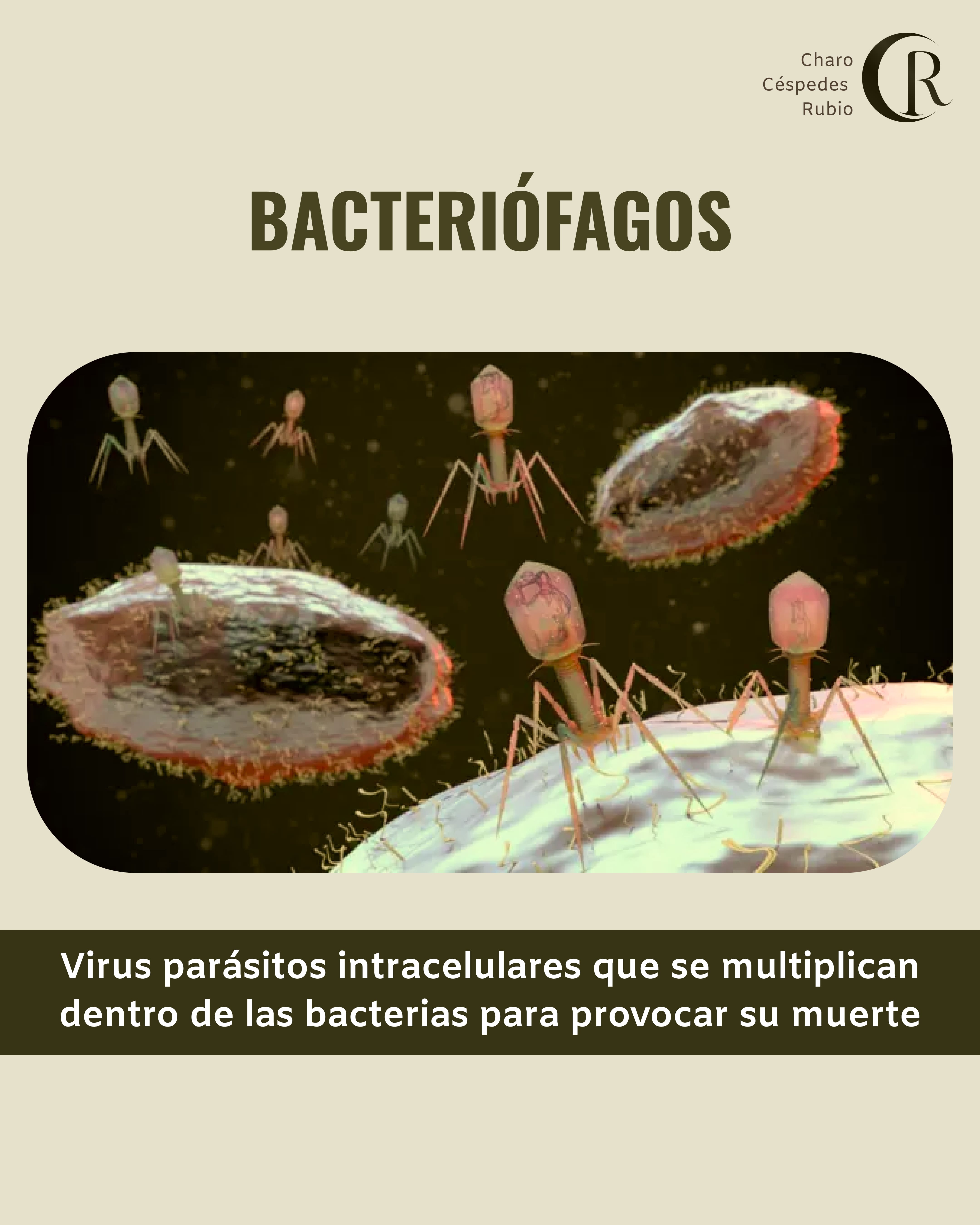 Los bacteriófagos son virus que se multiplican dentro de las bacterias hasta provocar su muerte, utilizando sus maquinarias biosintéticas.