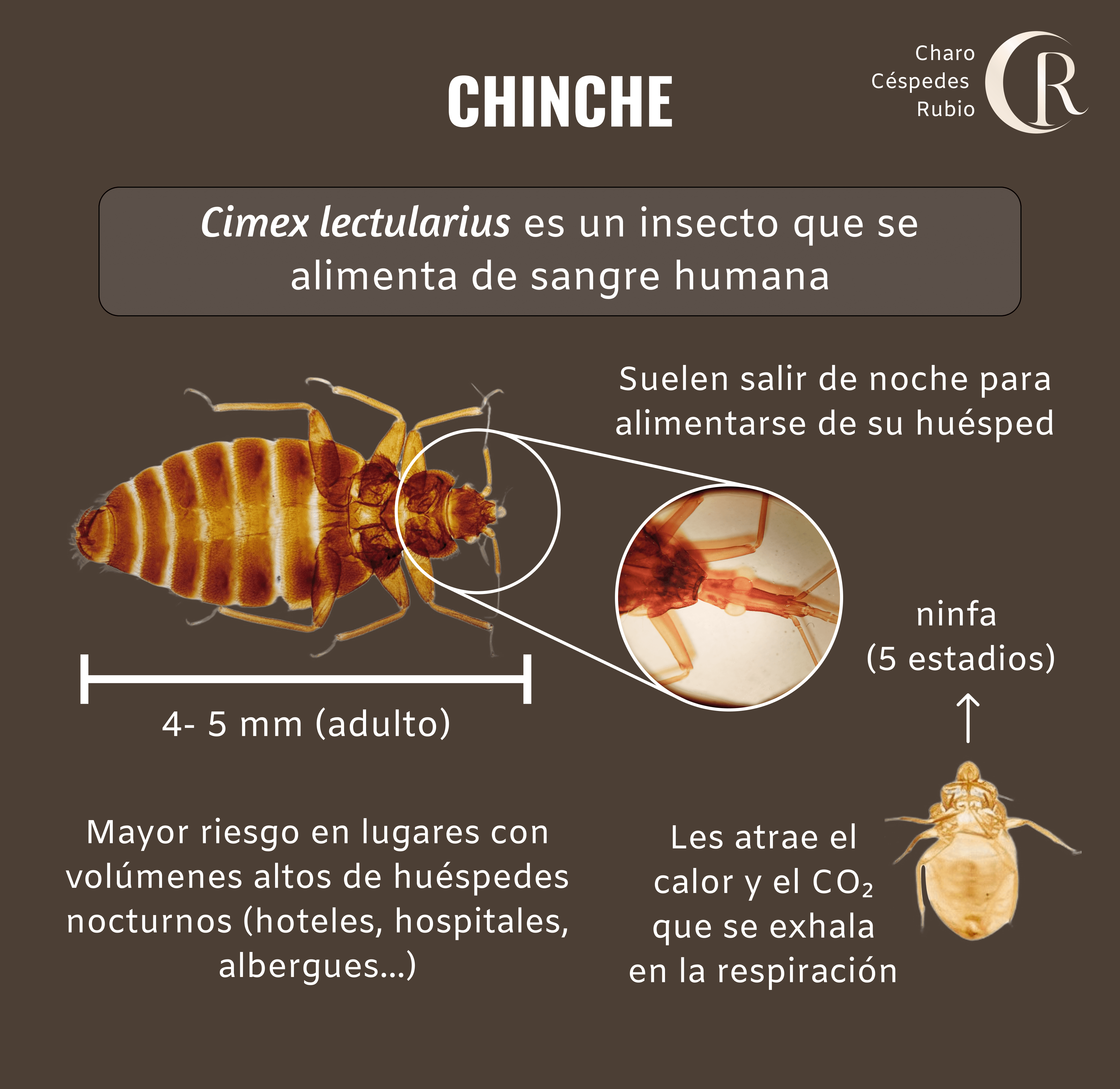 Cimex ñectularius, popularmente conocido como chinche, es un insecto que se alimenta con sangre humana. Existen otras especies que infectan a distintos animales de sangre caliente.