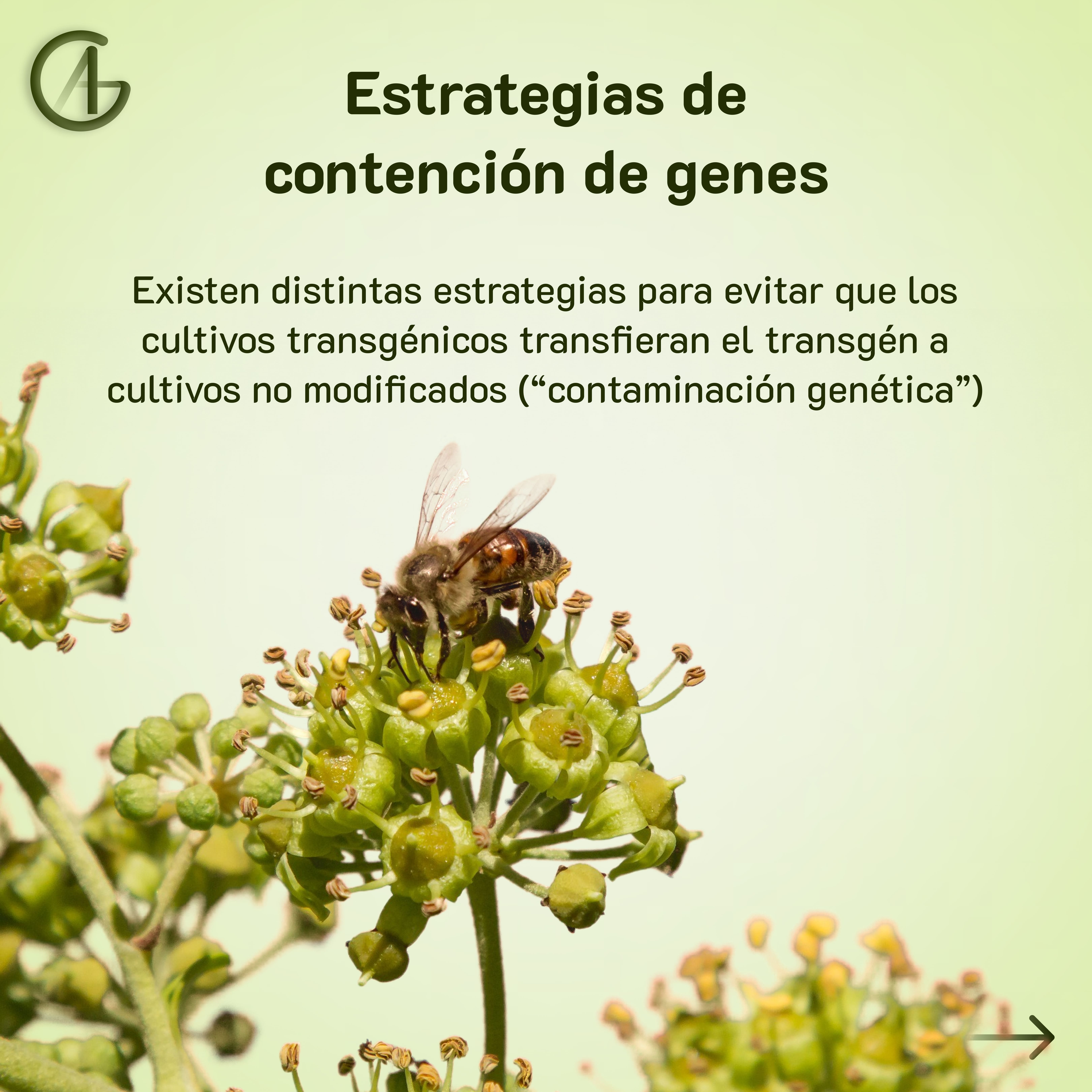 Uno de los posibles riesgos es que una planta transgénica polinice una planta no modificada, haciendo que esta última produzca semillas transgénicas, siendo un problema de “contaminación genética”.