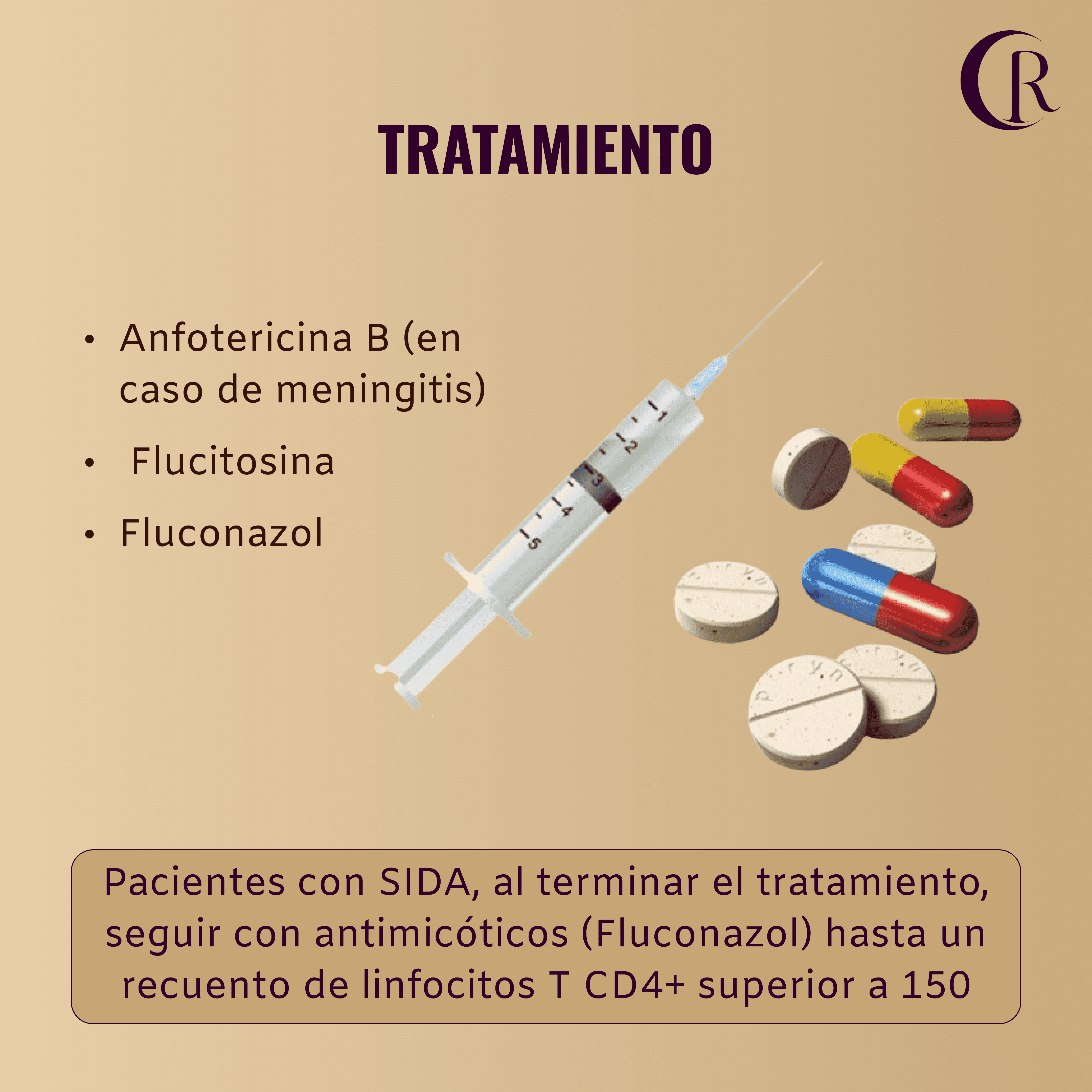 Las personas con SIDA después de terminar el tratamiento necesitan seguir tomando antimicóticos (Fluconazol) hasta que su recuento de linfocios T CD4+ sea superior a 150.