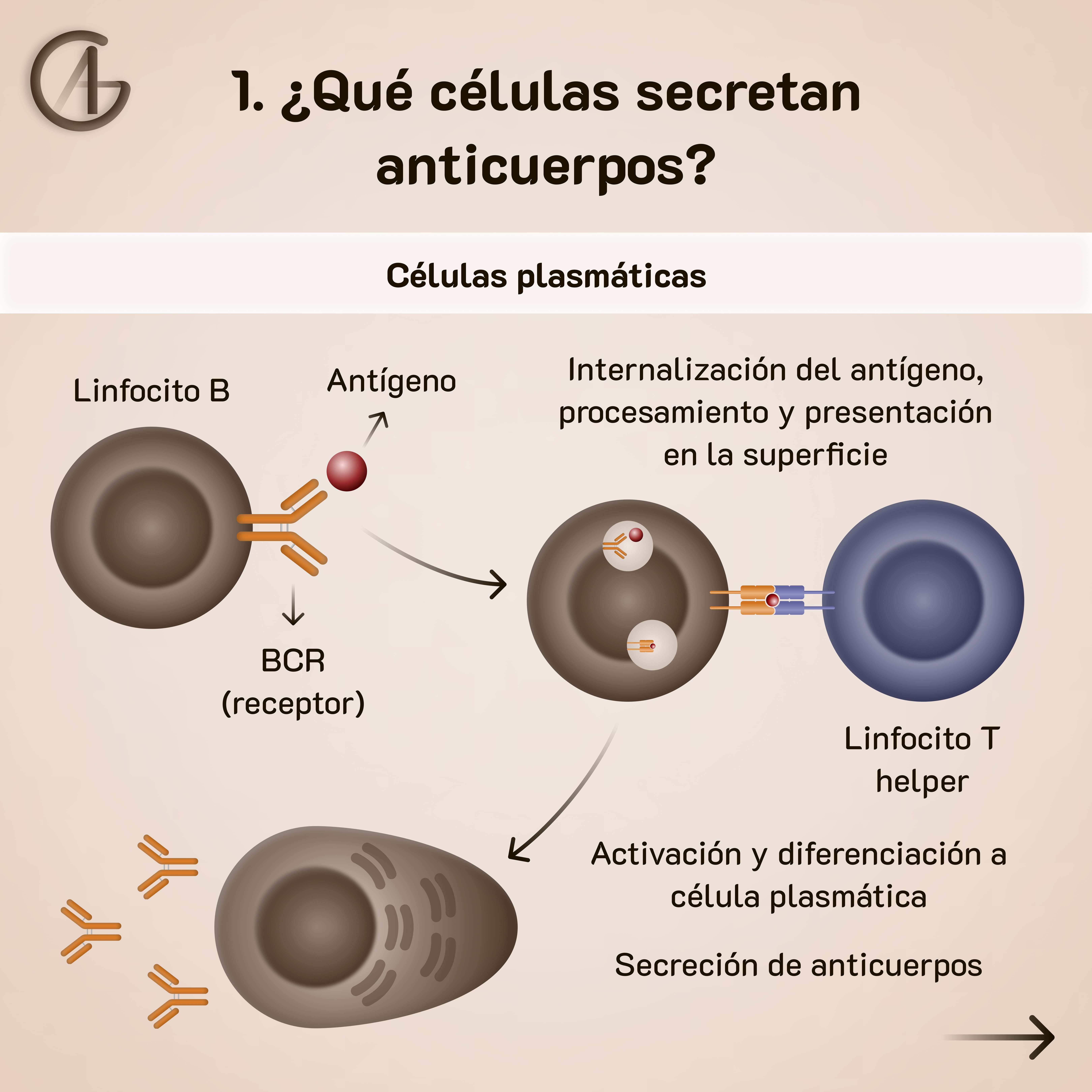 Cuando los linfocitos B se activan frente a un antígeno, se diferencian a célula plasmática o plasmocito. Esto conlleva un desarrollo de los orgánulos que participan en la producción de proteínas, en este caso los anticuerpos que serán secretados.