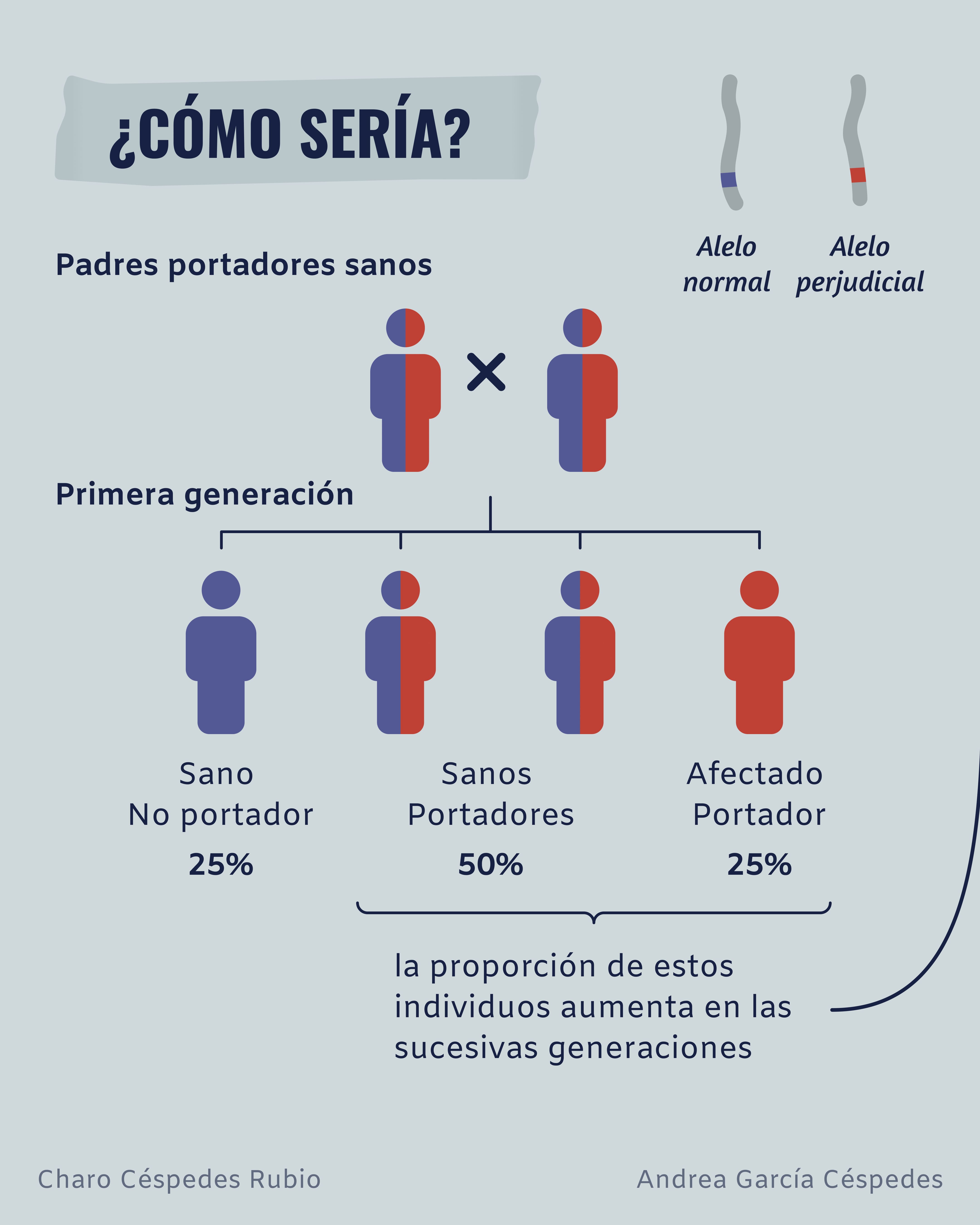 La mayoría de las personas portamos un alelo de alguna condición que probablemente nunca manifestemos. Pero si tenemos un hijo con una persona que también lo porta, existen muchas posibilidades de que desarrolle una enfermedad que incluso puede ser mortal.