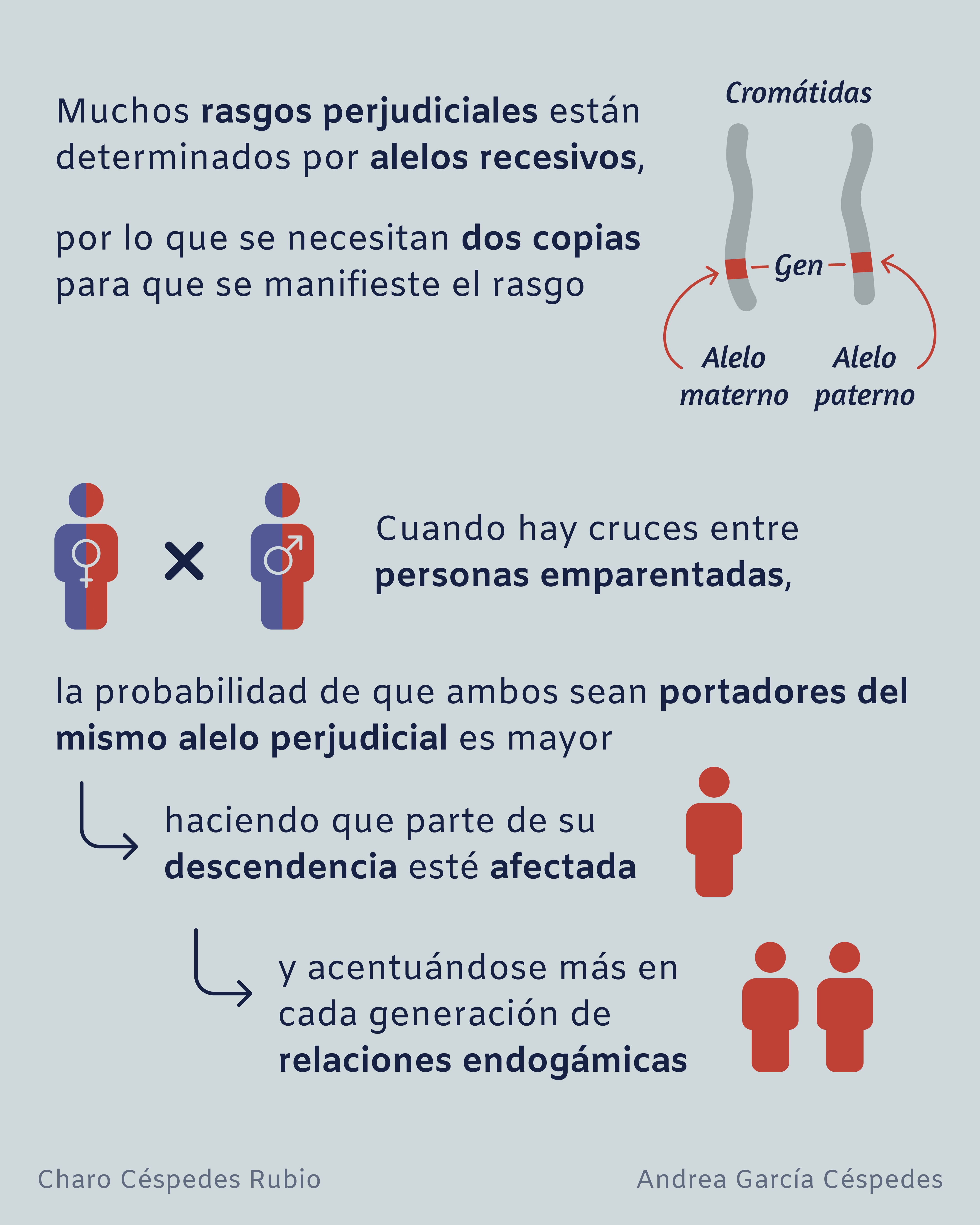 Es por esto que la endogamia o relación de consanguinidad supone un riesgo de anomalías congénitas y patologías genéticas, especialmente si se mantiene a lo largo de varias generaciones.