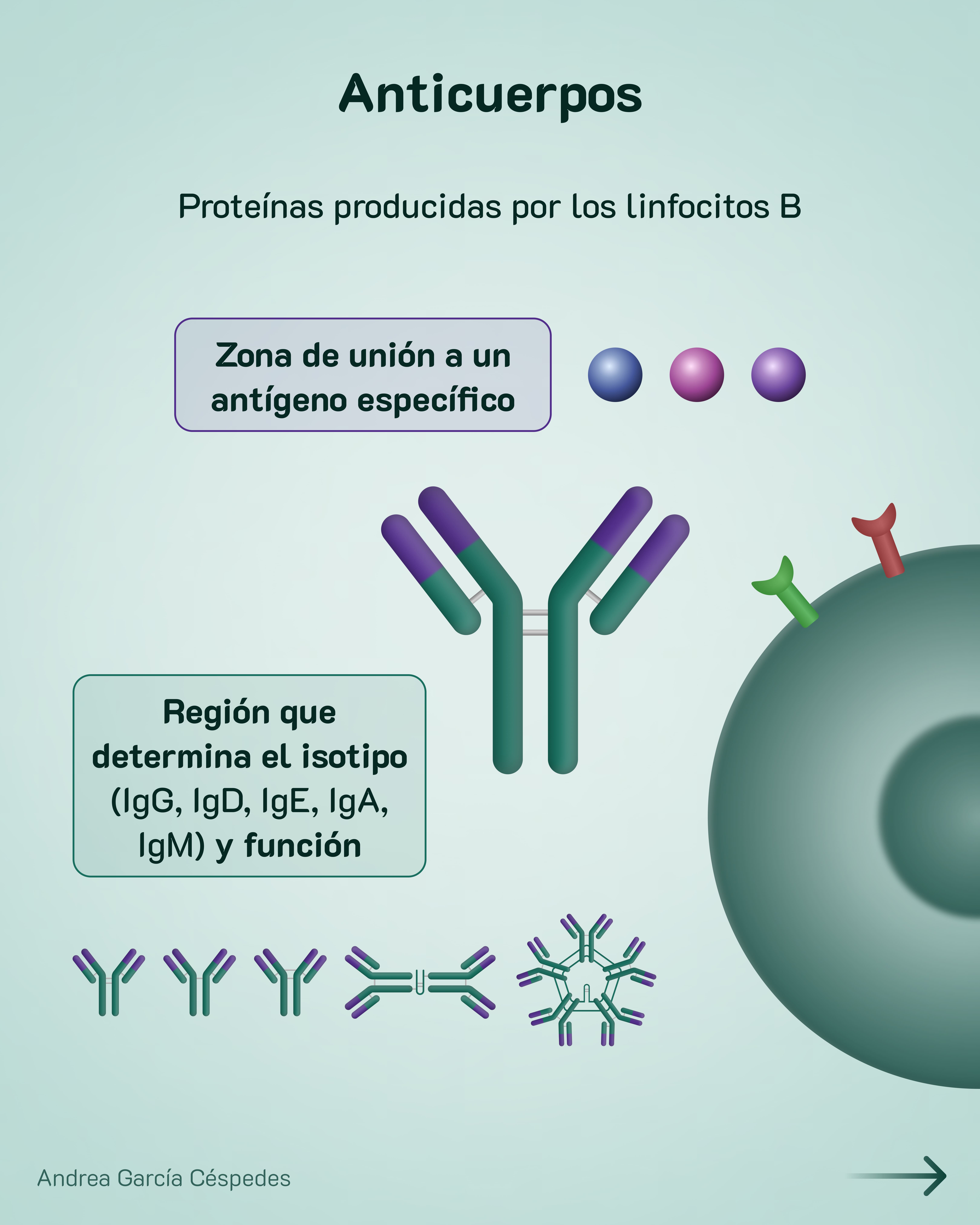Se expresan en la superficie de los linfocitos B y son secretados al medio cuando estos se activan ante una amenaza.