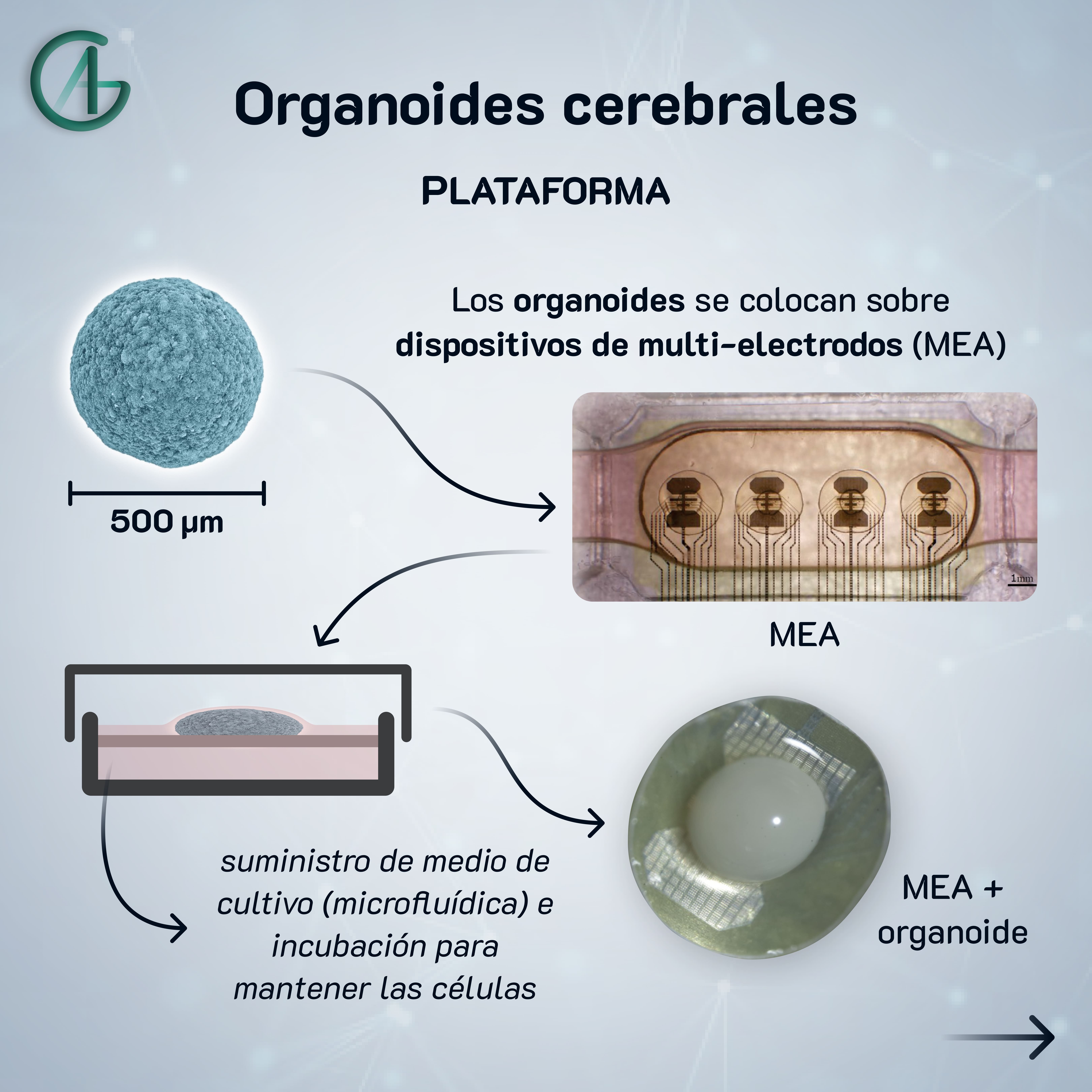 En resumen, lo que han desarrollado es un sistema de organoides cerebrales (en las condiciones adecuadas de cultivo) colocados sobre unos electrodos.