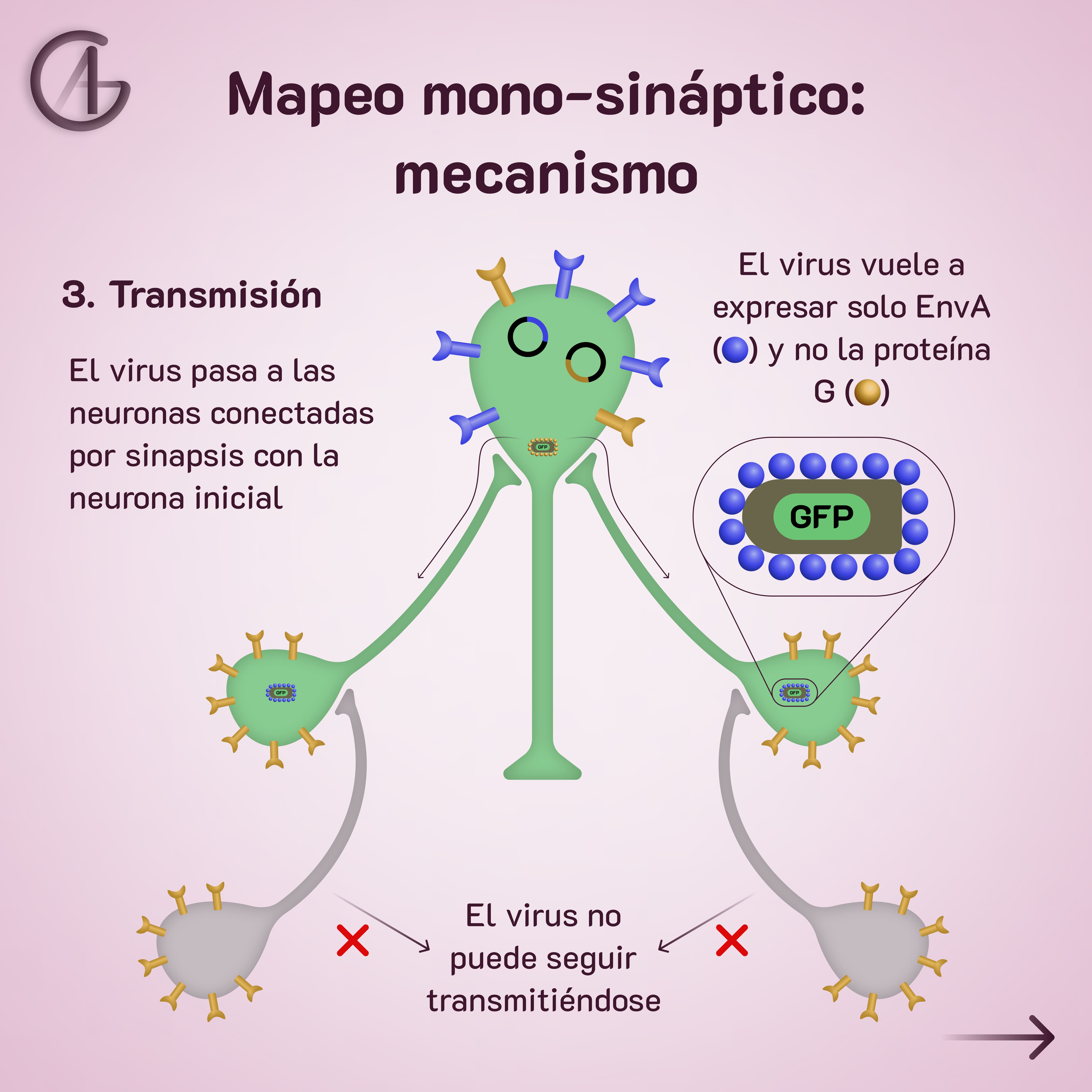 Es decir, que se puede saber qué neuronas conectan directamente con una neurona determinada gracias a que el virus se transmite a través de las sinapsis.