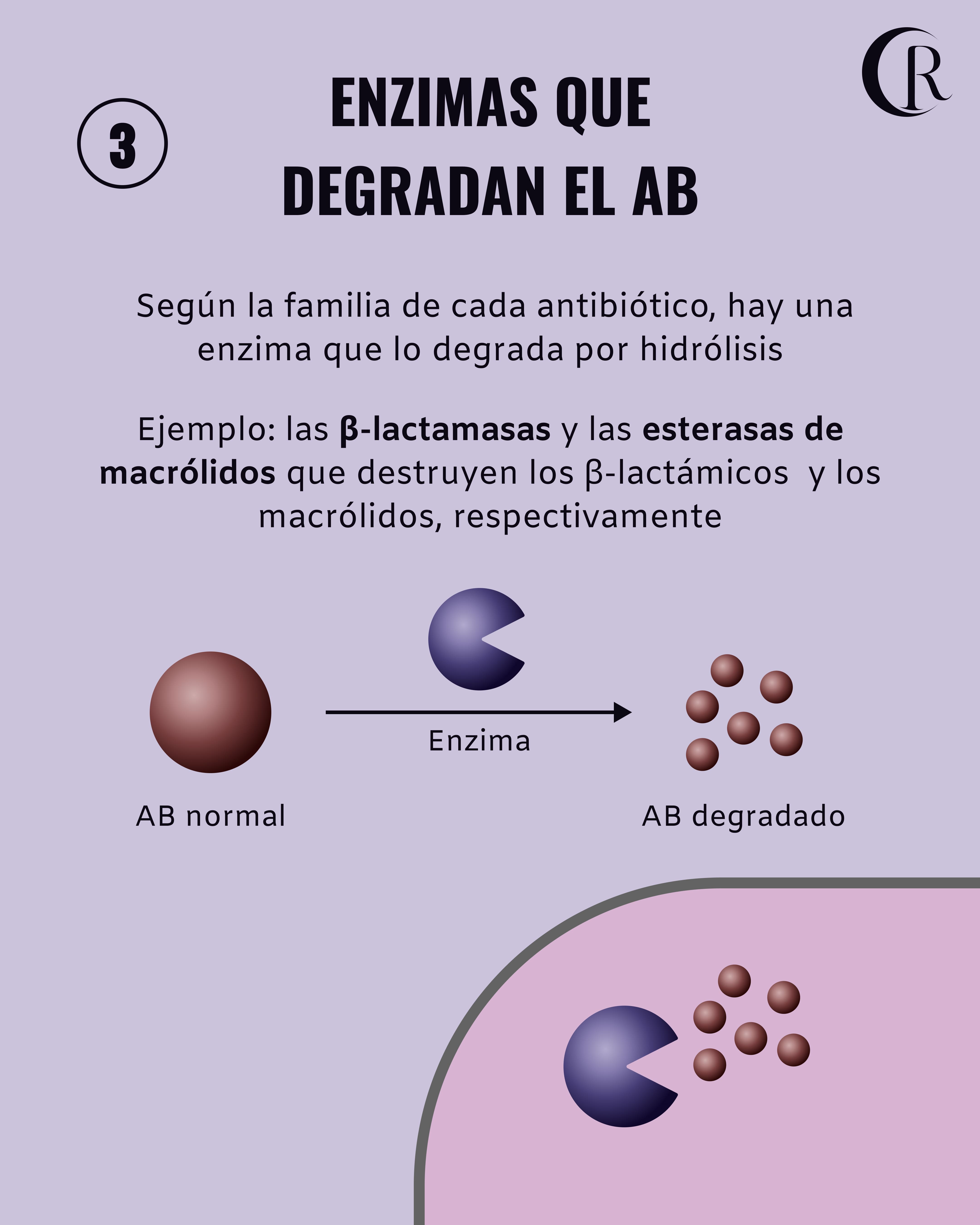 Enzimas: estas enzimas destruyen los antibióticos o los modifican para que no puedan cumplir su función