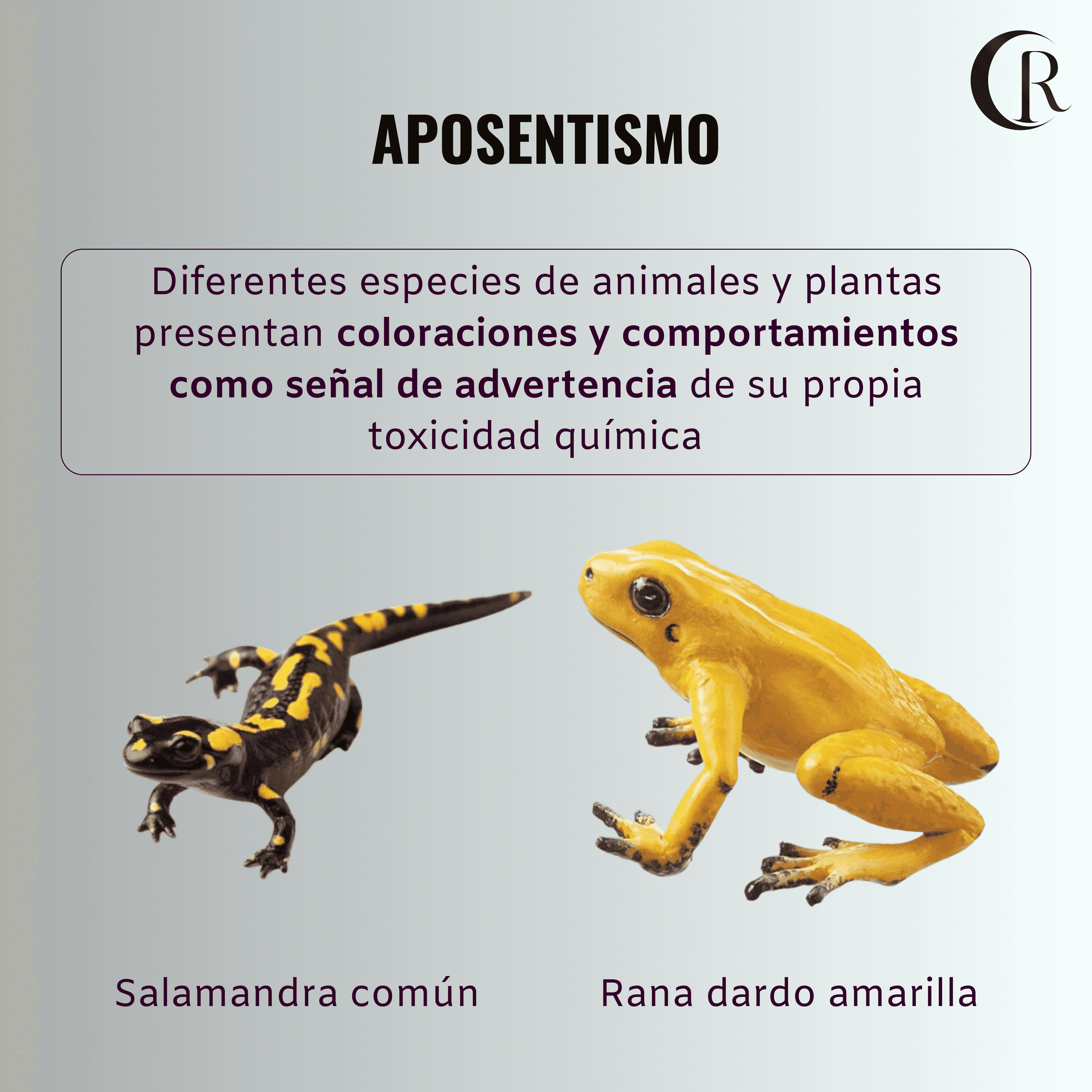 Aposentismo: diferentes especies de animales y plantas presentan coloraciones y comportamientos como señal de advertencia de su toxicidad química.