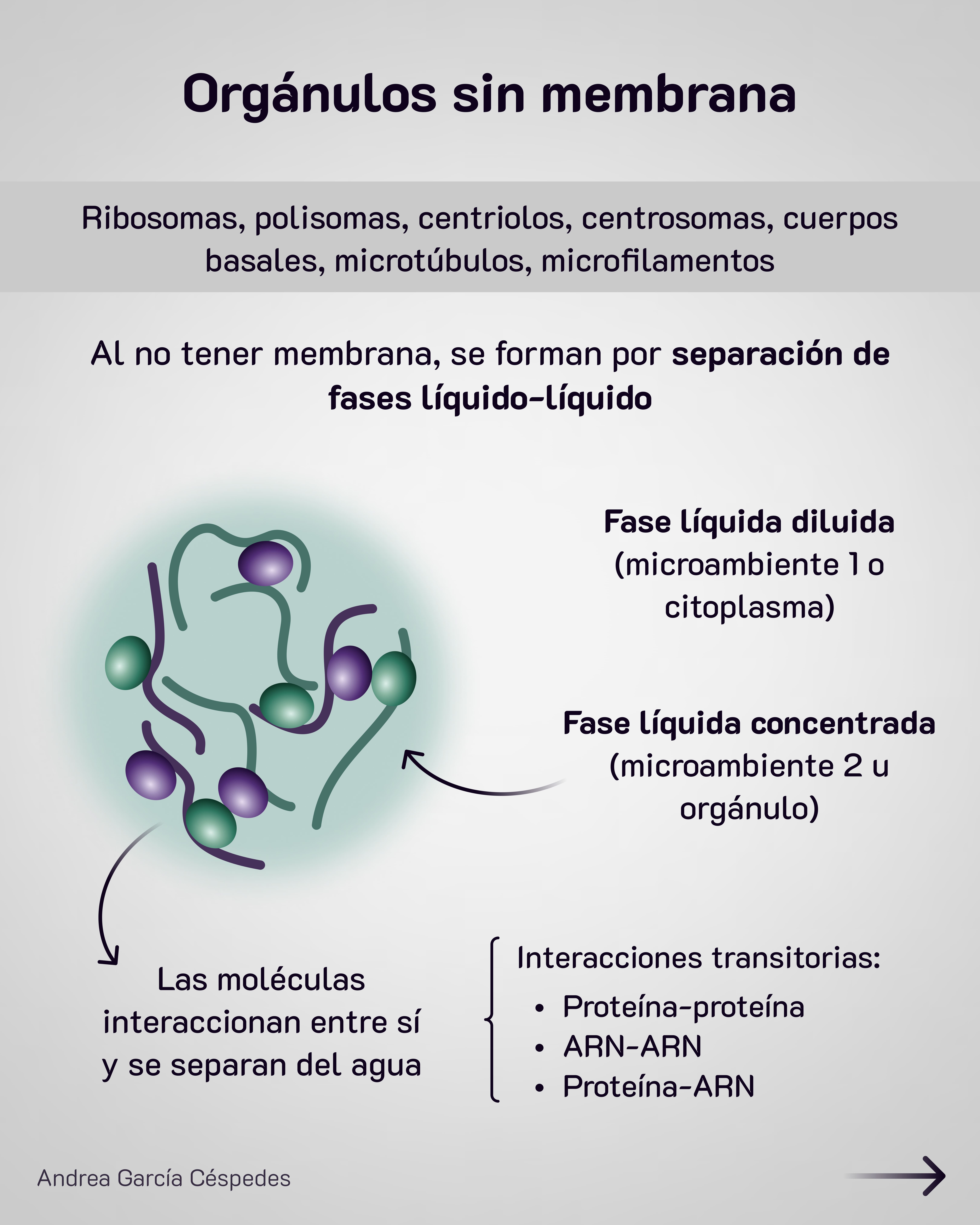 Estos se forman por separación de 2 fases: una líquida diluida (citoplasma) y una líquida concentrada en determinadas moléculas (orgánulo). Así se forman 2 microambientes diferentes.