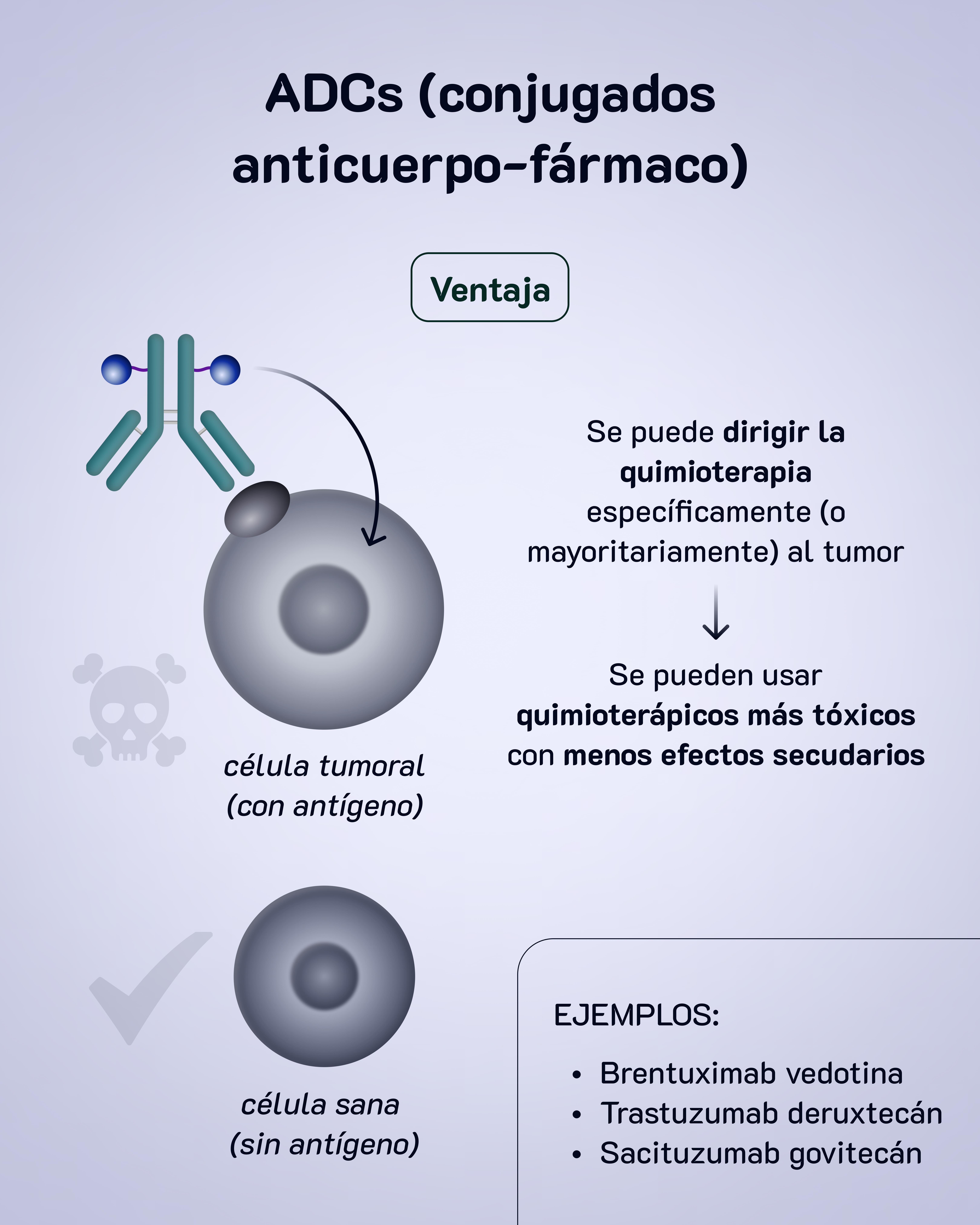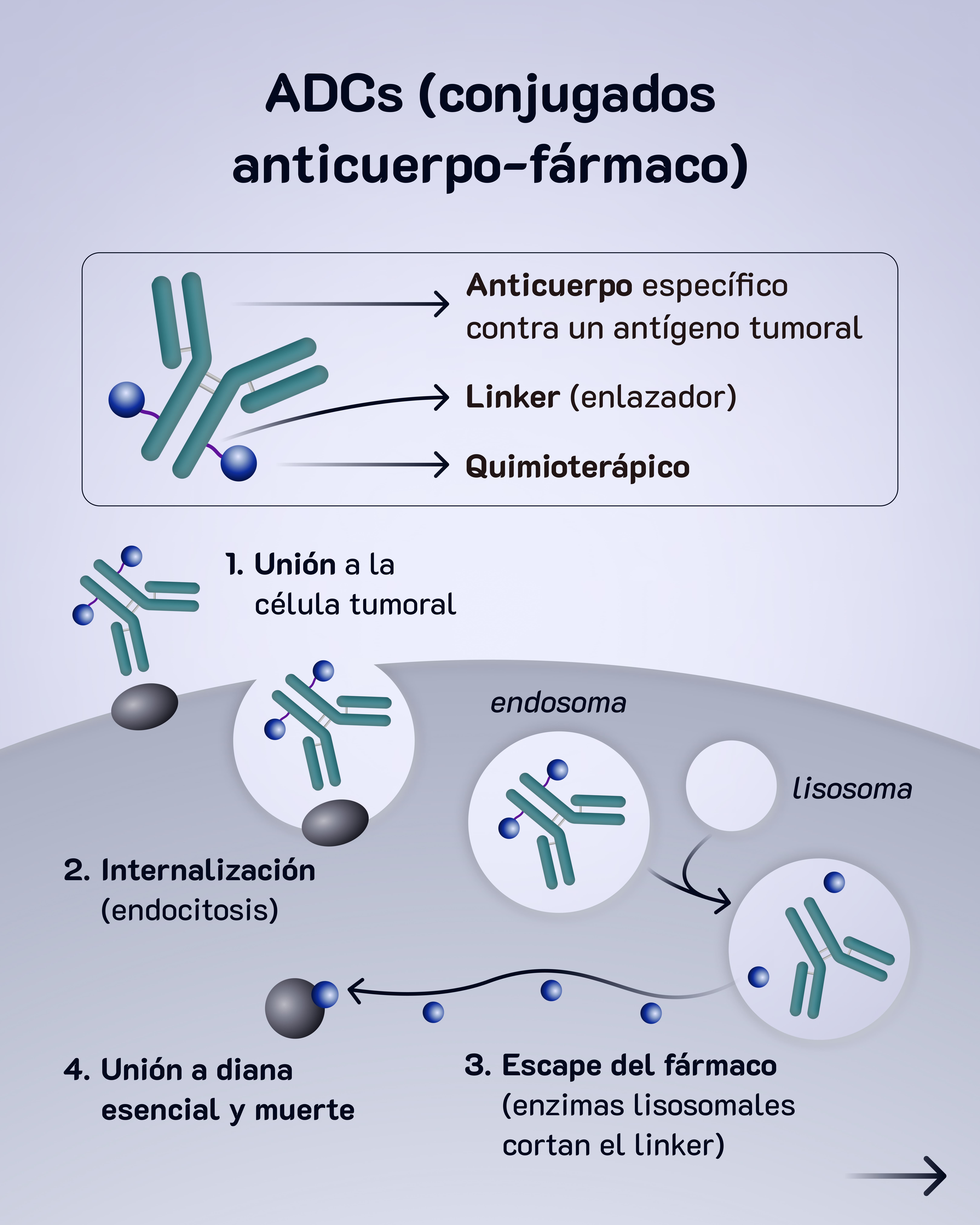 Esto se llama ADC (conjugado anticuerpo-fármaco) y el mecanismo de acción lo entenderás mejor viendo el carrusel.