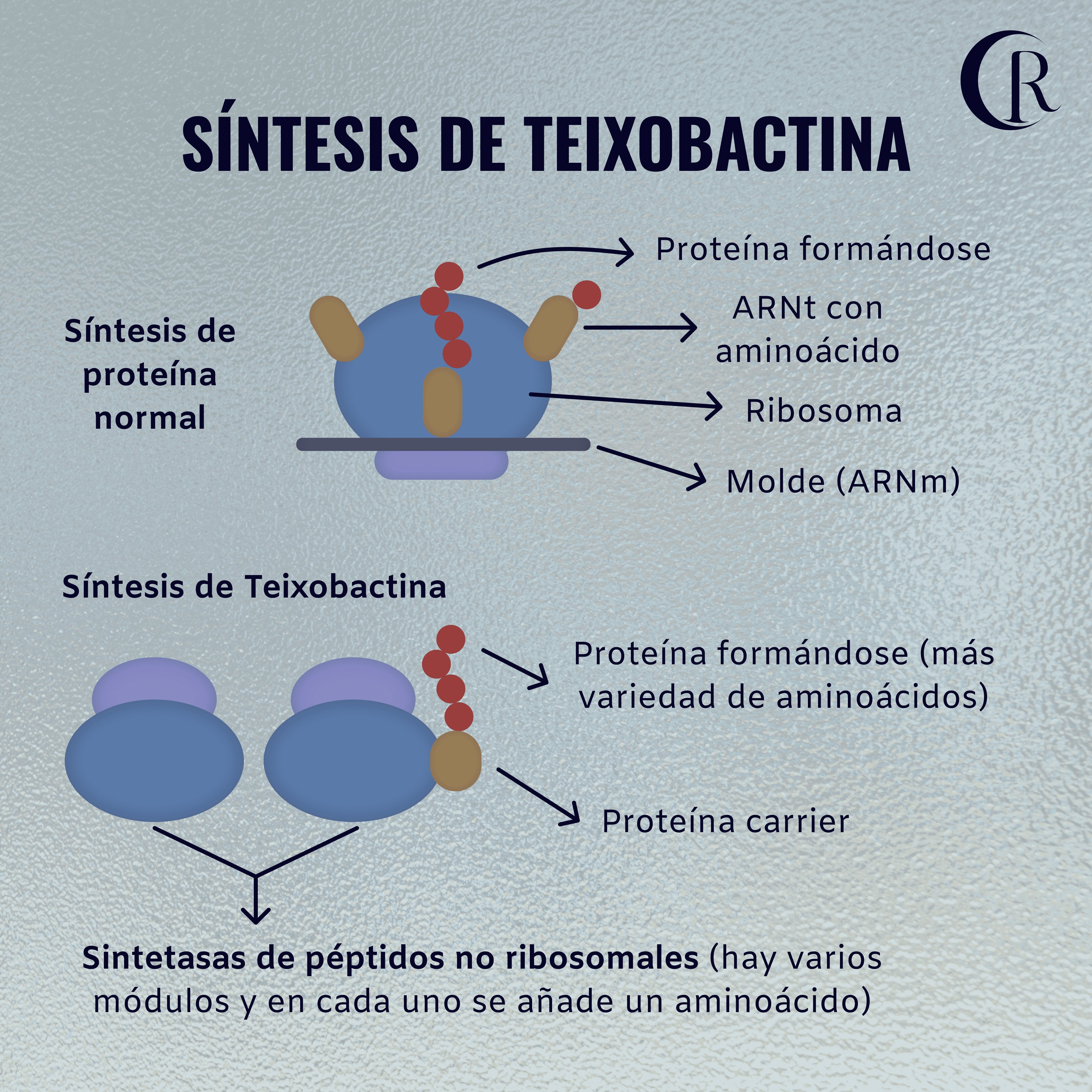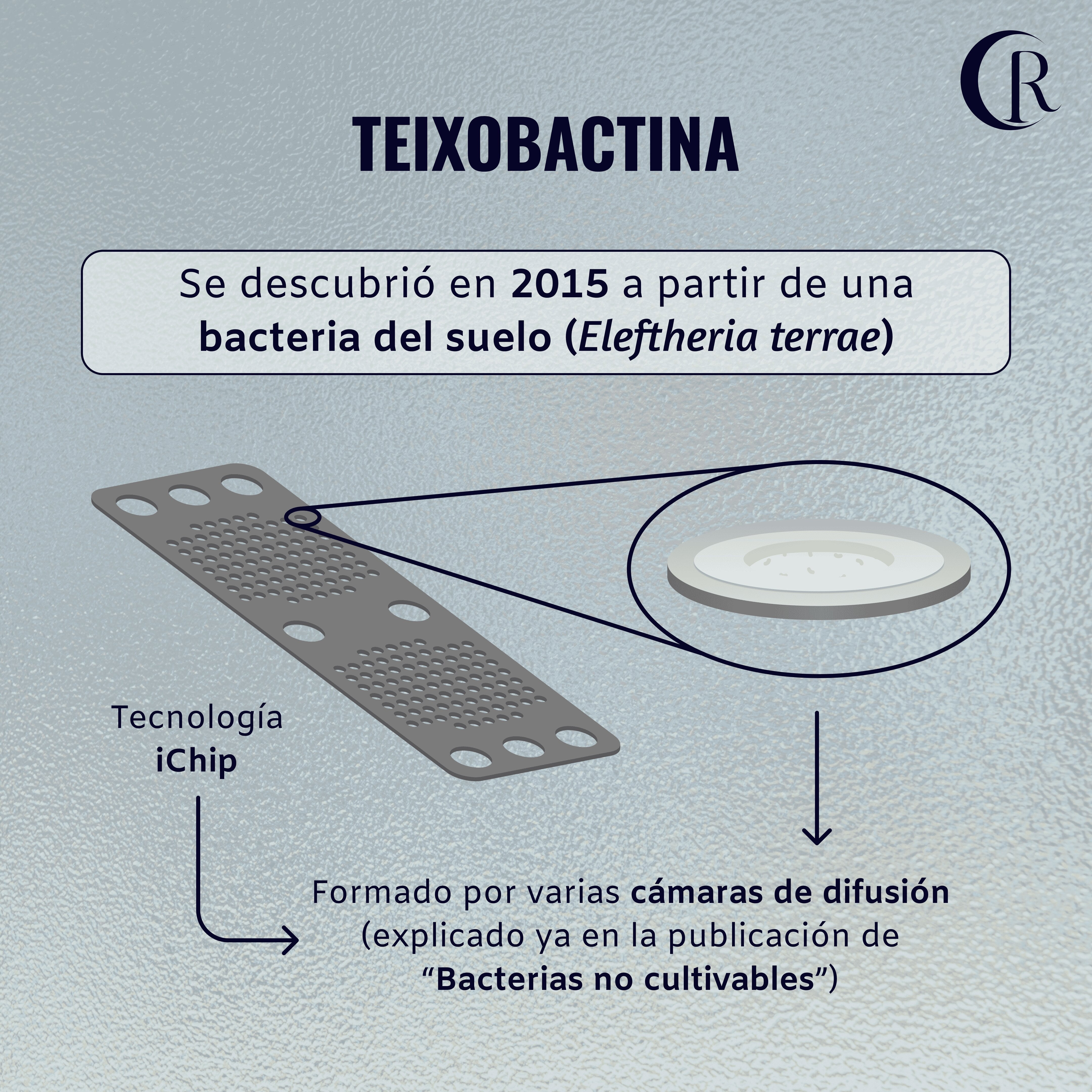 Este péptido proviene de la bacteria del suelo Eleftheria terrae cultivada mediante la tecnología iChip.
