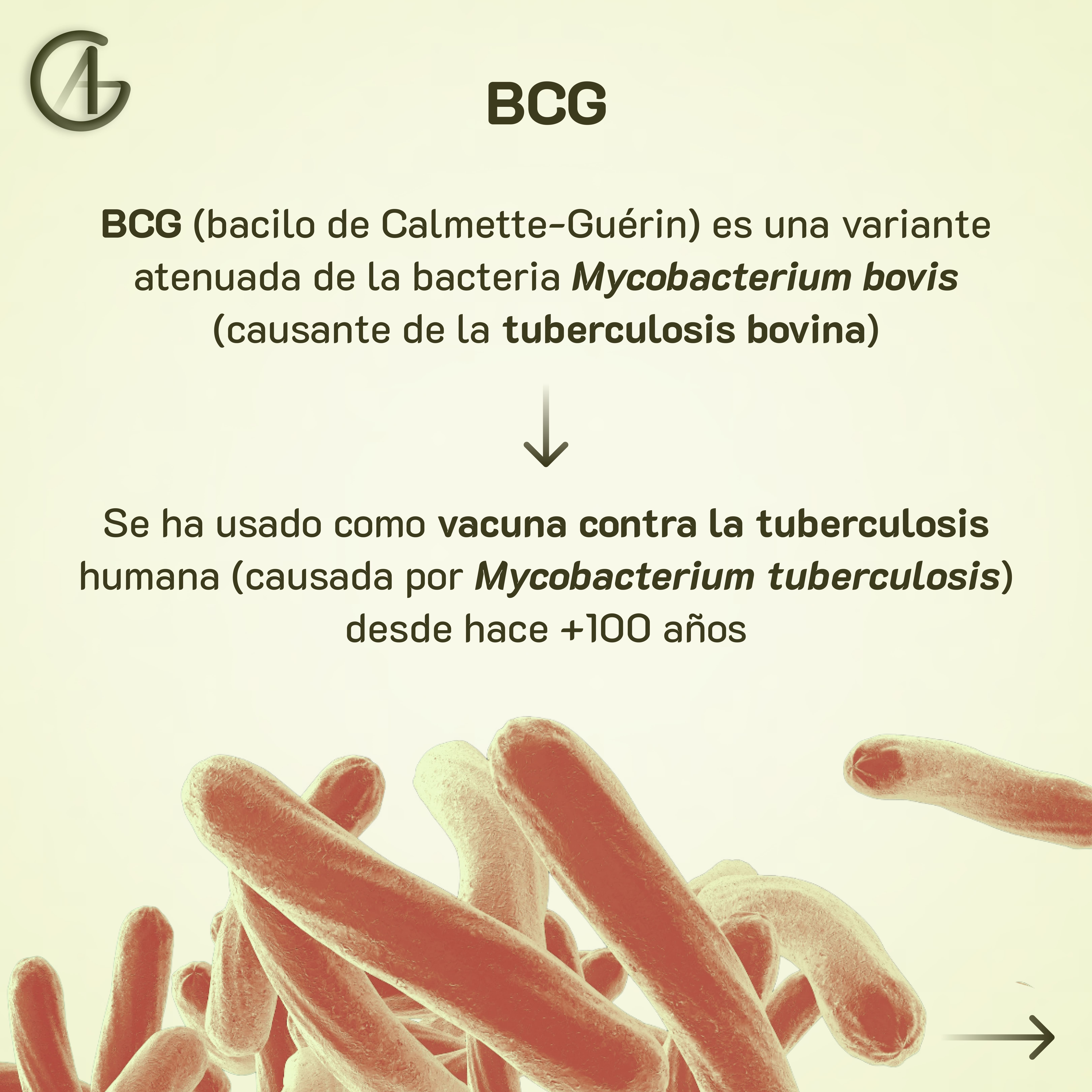 BCG es una variante atenuada de Mycobacterium bovis y, como es típico de las vacunas vivas, produce una fuerte respuesta inmunitaria.