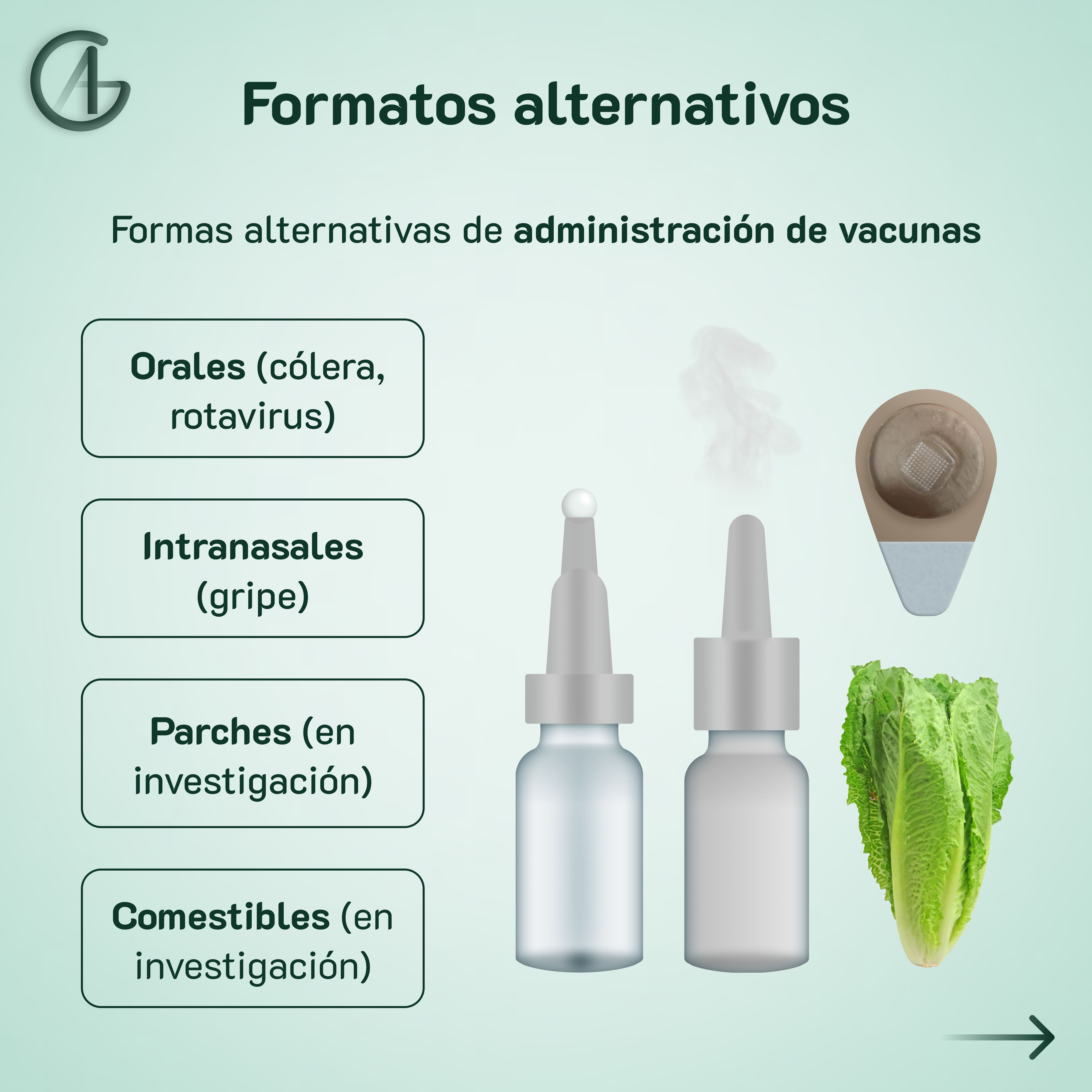 Por otro lado, se están investigando alternativas que faciliten las campañas de vacunación masiva. Es el caso de los parches de microagujas que se colocan sobre la piel y las vacunas comestibles obtenidas a partir de plantas o algas.